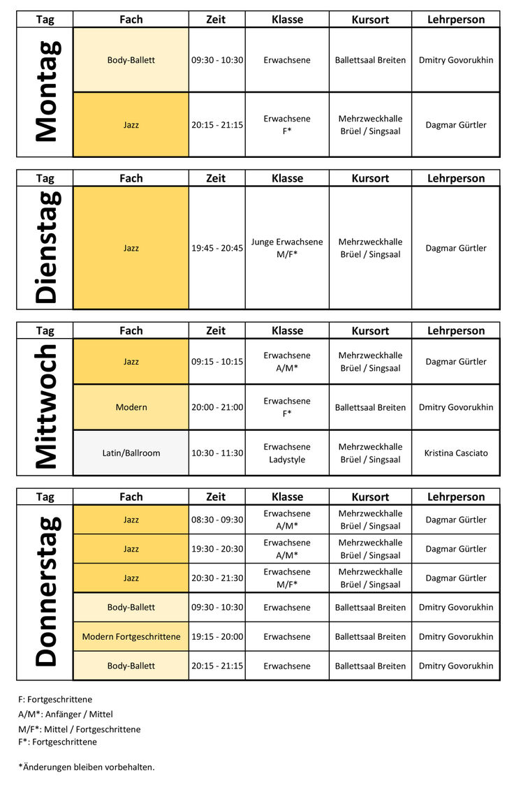 Stundenplan Erwachsenenunterricht