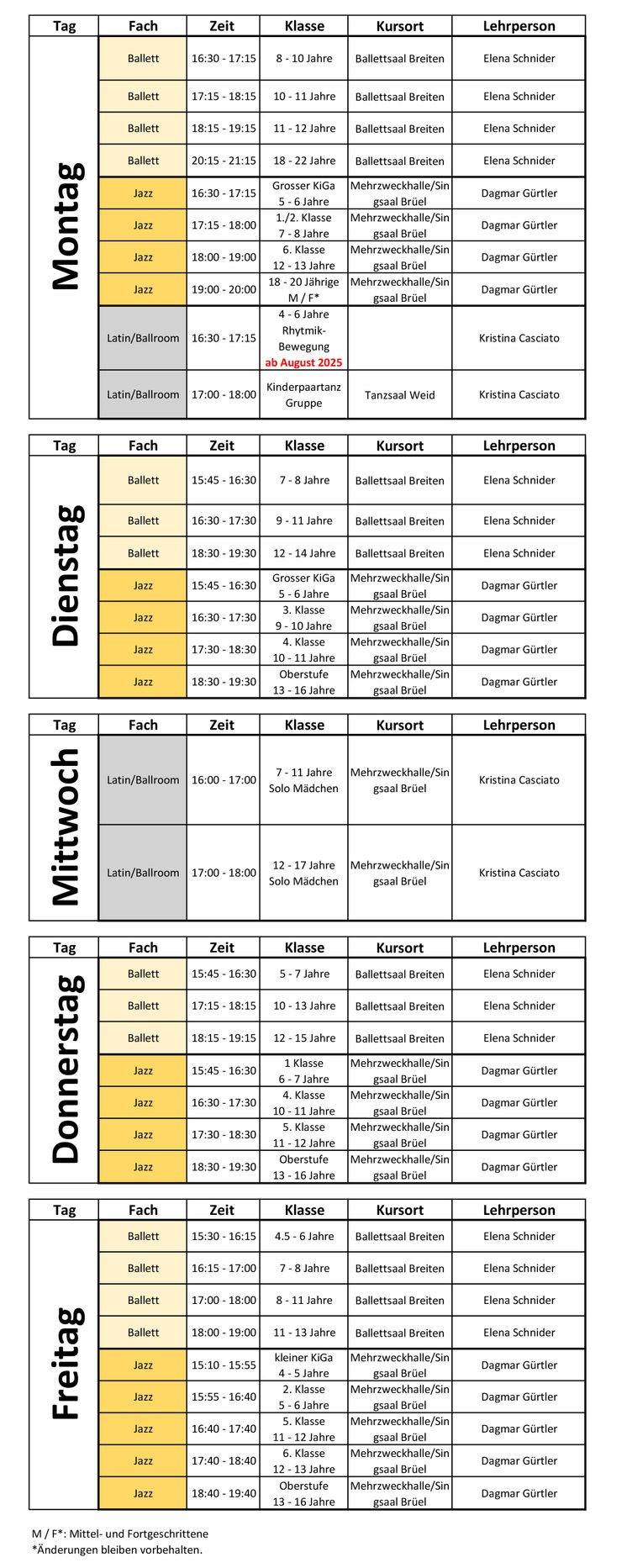 Fragen zu den Stundenplänen? Wir stehen gerne zur Verfügung.