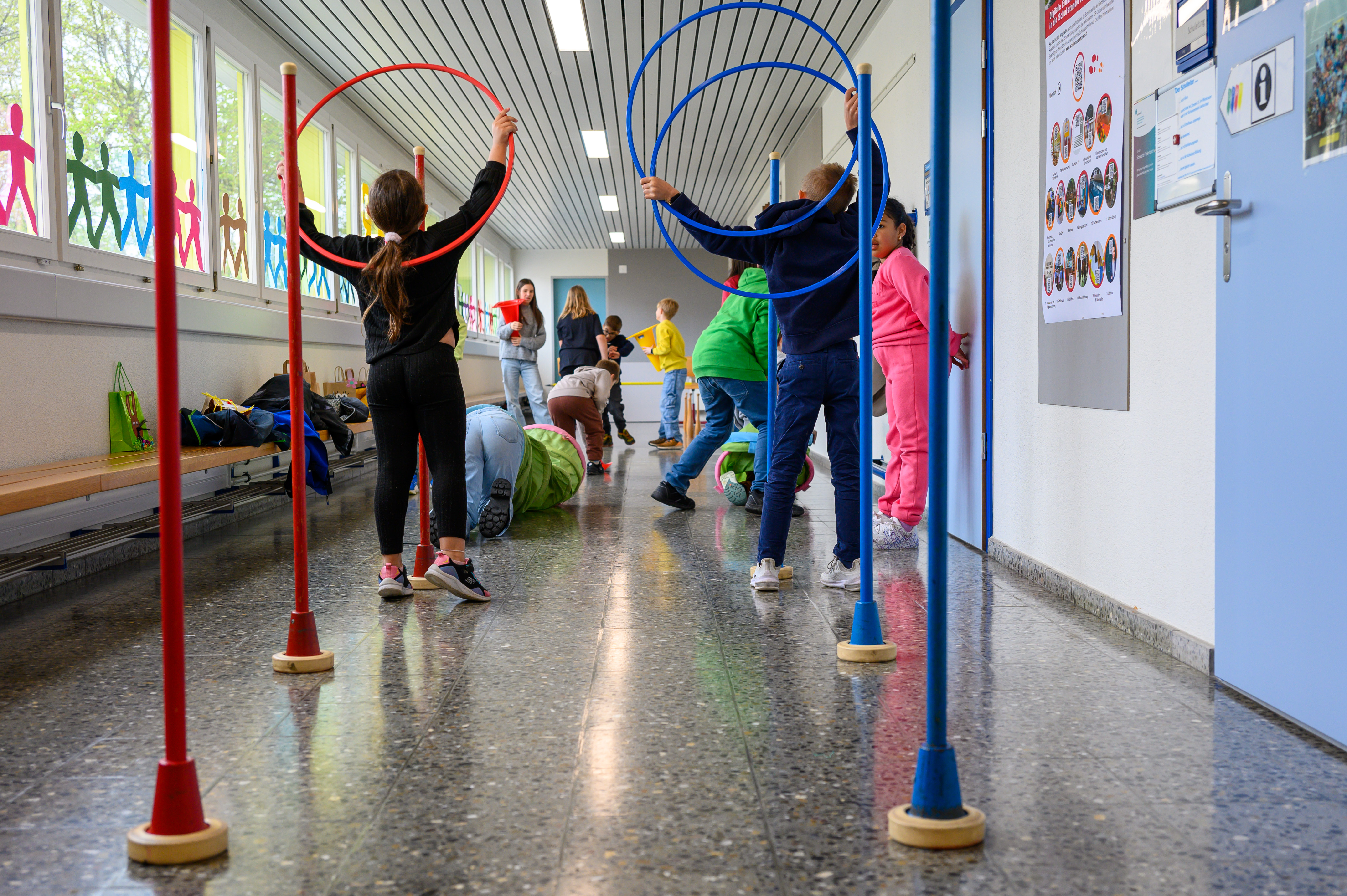 Unter dem Jahresmotto «Zäme gaht’s besser» durchwanderten die Kinder die Schulhäuser Schwerzi und Bollenweid und zeigten grosse Begeisterung bei den einzelnen Angeboten. Die Grossen unterstützten die Kleinen und je nach Spiel auch umgekehrt.